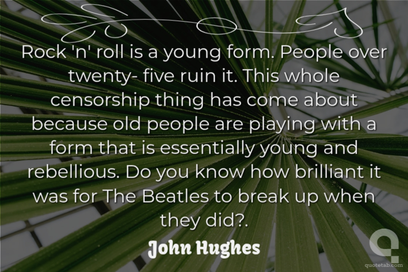 Rock 'n' roll is a young form. People over twenty- five ruin it. This whole censorship thing has come about because old people are playing with a form that is essentially young and rebellious. Do you know how brilliant it was for The Beatles to break up when they did?.