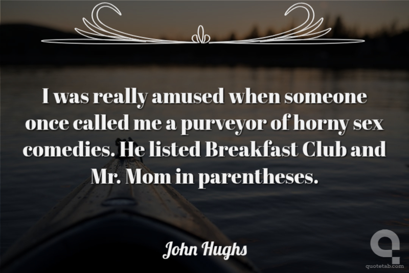 I was really amused when someone once called me a purveyor of horny sex comedies. He listed Breakfast Club and Mr. Mom in parentheses.