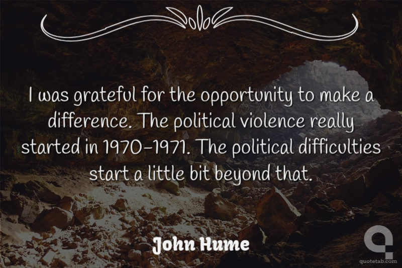 I was grateful for the opportunity to make a difference. The political violence really started in 1970-1971. The political difficulties start a little bit beyond that.