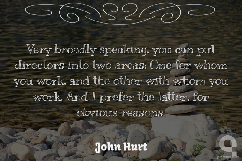 Very, very broadly speaking, you can put directors into two areas: One for whom you work, and the other with whom you work. And I prefer the latter, for obvious reasons. It's a great relief to feel that you're working with someone rather than for someone.