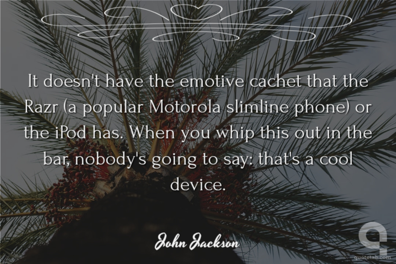 It doesn't have the emotive cachet that the Razr or the iPod has. When you whip this out in the bar, nobody's going to say, 'That's a cool device.