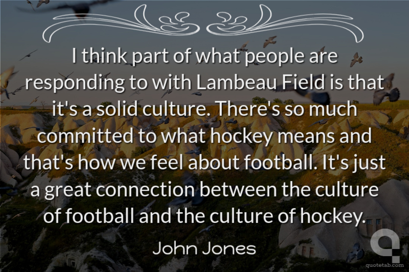 I think part of what people are responding to with Lambeau Field is that it's a solid culture. There's so much committed to what hockey means and that's how we feel about football. It's just a great connection between the culture of football and the culture of hockey.
