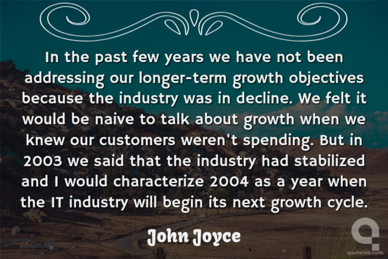 In the past few years we have not been addressing our longer-term growth objectives because the industry was in decline. We felt it would be naive to talk about growth when we knew our customers weren't spending. But in 2003 we said that the industry had stabilized and I would characterize 2004 as a year when the IT industry will begin its next growth cycle.