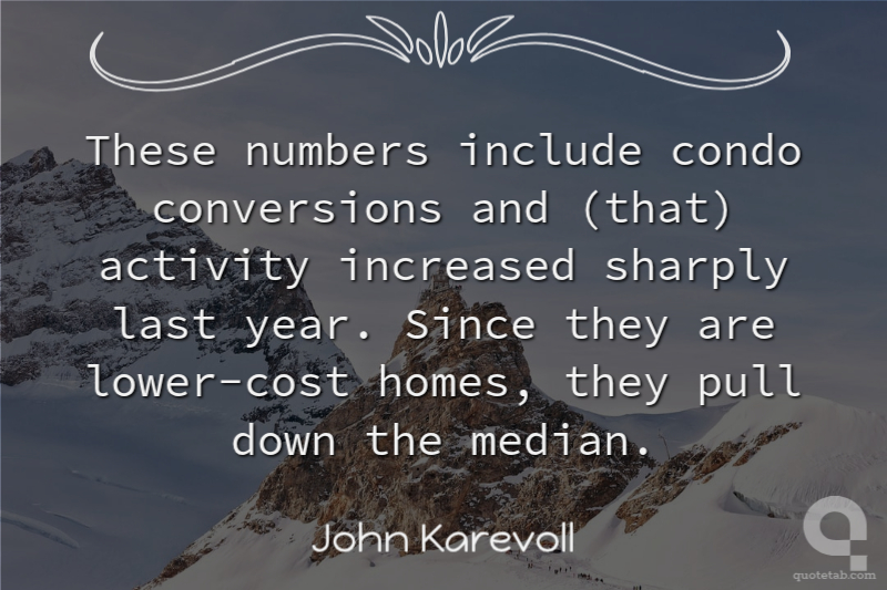 These numbers include condo conversions and (that) activity increased sharply last year. Since they are lower-cost homes, they pull down the median.