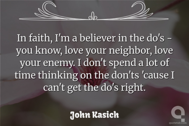 In faith, I'm a believer in the do's - you know, love your neighbor, love your enemy. I don't spend a lot of time thinking on the don'ts 'cause I can't get the do's right.