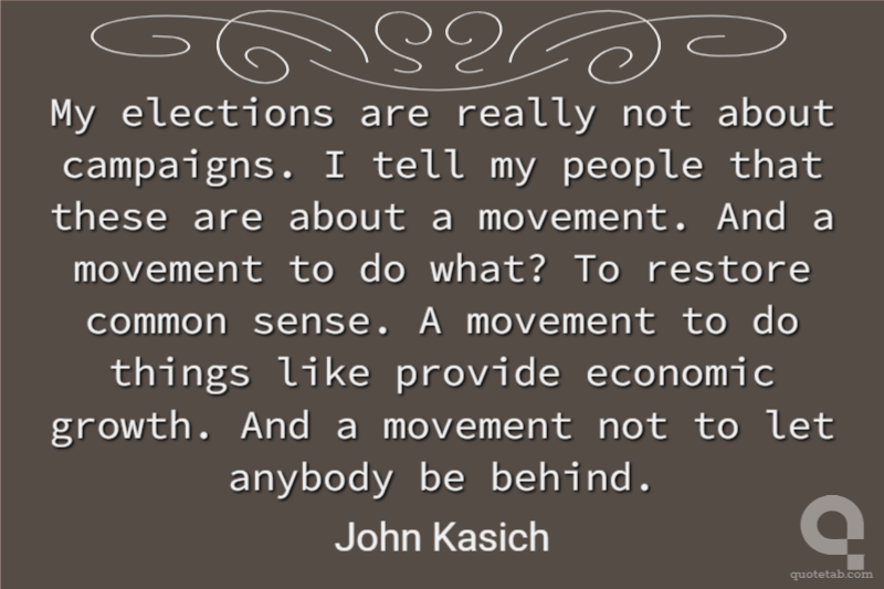 My elections are really not about campaigns. I tell my people that these are about a movement. And a movement to do what? To restore common sense. A movement to do things like provide economic growth. And a movement not to let anybody be behind.