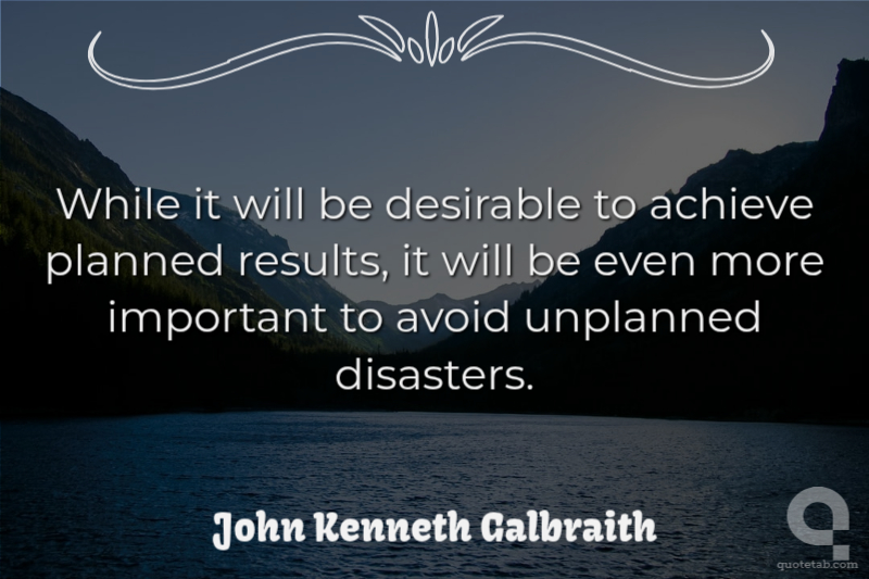 While it will be desirable to achieve planned results, it will be even more important to avoid unplanned disasters.