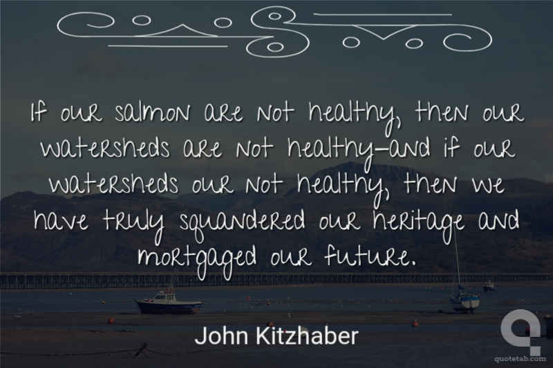 If our salmon are not healthy, then our watersheds are not healthy-and if our watersheds our not healthy, then we have truly squandered our heritage and mortgaged our future.