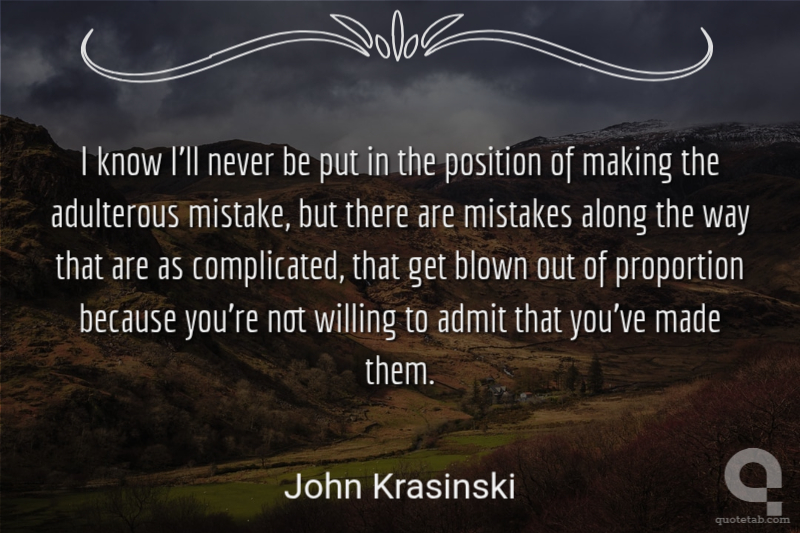 I know I'll never be put in the position of making the adulterous mistake, but there are mistakes along the way that are as complicated, that get blown out of proportion because you're not willing to admit that you've made them.