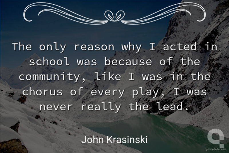 The only reason why I acted in school was because of the community, like I was in the chorus of every play, I was never really the lead.