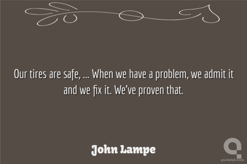 Our tires are safe, ... When we have a problem, we admit it and we fix it. We've proven that.