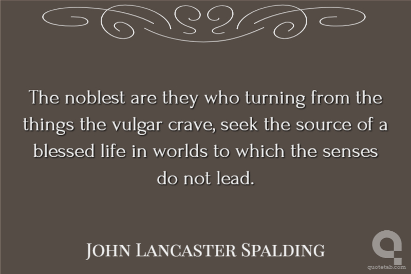 The noblest are they who turning from the things the vulgar crave, seek the source of a blessed life in worlds to which the senses do not lead.