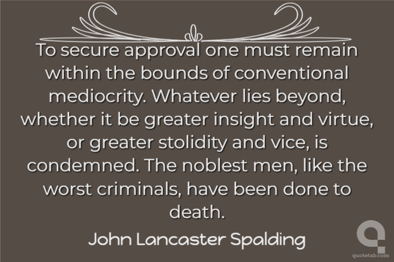 To secure approval one must remain within the bounds of conventional mediocrity. Whatever lies beyond, whether it be greater insight and virtue, or greater stolidity and vice, is condemned. The noblest men, like the worst criminals, have been done to death.