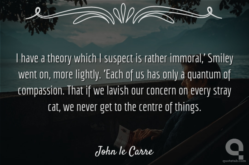 I have a theory which I suspect is rather immoral,' Smiley went on, more lightly. 'Each of us has only a quantum of compassion. That if we lavish our concern on every stray cat, we never get to the centre of things.