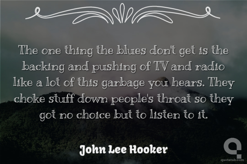 The one thing the blues don't get is the backing and pushing of TV and radio like a lot of this garbage you hears. They choke stuff down people's throat so they got no choice but to listen to it.