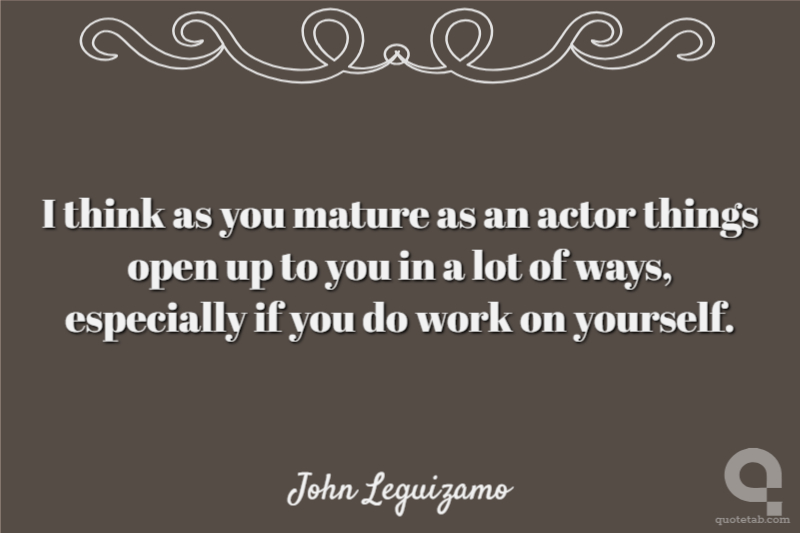 I think as you mature as an actor things open up to you in a lot of ways, especially if you do work on yourself.