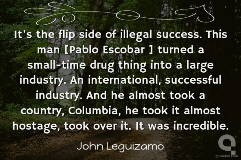 It's the flip side of illegal success. This man [Pablo Escobar ] turned a small-time drug thing into a large industry. An international, successful industry. And he almost took a country, Columbia, he took it almost hostage, took over it. It was incredible.