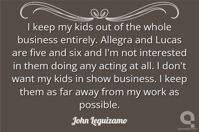 I keep my kids out of the whole business entirely. Allegra and Lucas are five and six and I'm not interested in them doing any acting at all. I don't want my kids in show business. I keep them as far away from my work as possible.
