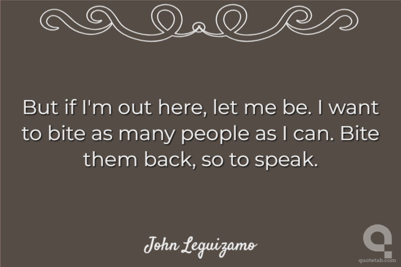 But if I'm out here, let me be. I want to bite as many people as I can. Bite them back, so to speak.