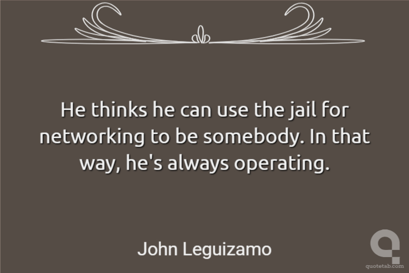 He thinks he can use the jail for networking to be somebody. In that way, he's always operating.