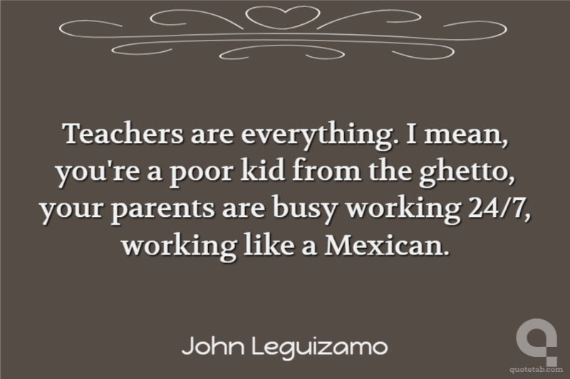 Teachers are everything. I mean, you're a poor kid from the ghetto, your parents are busy working 24/7, working like a Mexican.
