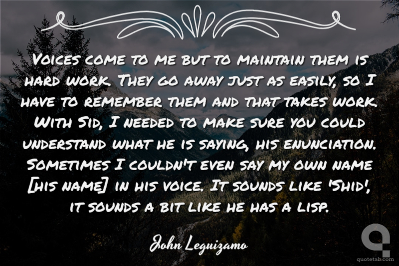 Voices come to me but to maintain them is hard work. They go away just as easily, so I have to remember them and that takes work. With Sid, I needed to make sure you could understand what he is saying, his enunciation. Sometimes I couldn't even say my own name [his name] in his voice. It sounds like 'Shid', it sounds a bit like he has a lisp.