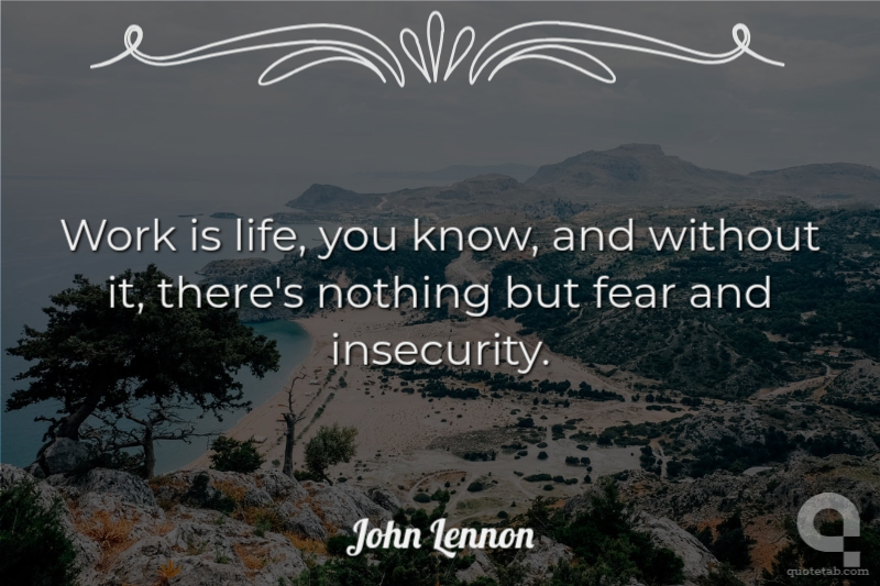 Work is life, you know, and without it, there's nothing but fear and insecurity.