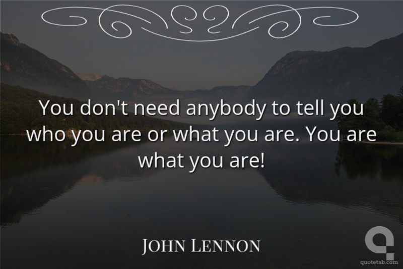 You don't need anybody to tell you who you are or what you are. You are what you are!