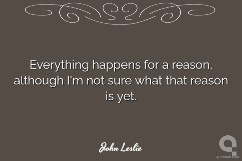 Everything happens for a reason, although I'm not sure what that reason is yet.