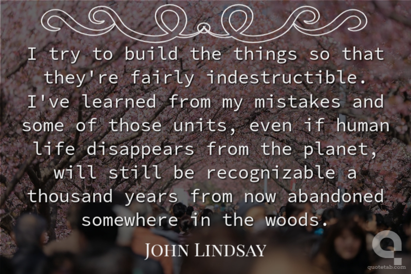 I try to build the things so that they're fairly indestructible. I've learned from my mistakes and some of those units, even if human life disappears from the planet, will still be recognizable a thousand years from now abandoned somewhere in the woods.