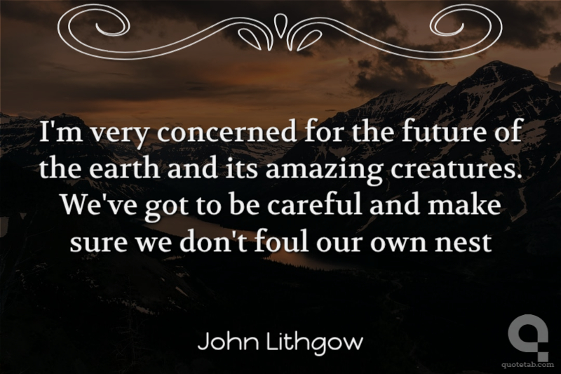 I'm very concerned for the future of the earth and its amazing creatures. We've got to be careful and make sure we don't foul our own nest