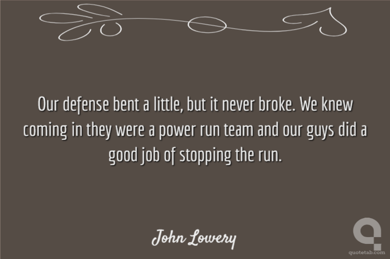 Our defense bent a little, but it never broke. We knew coming in they were a power run team and our guys did a good job of stopping the run.