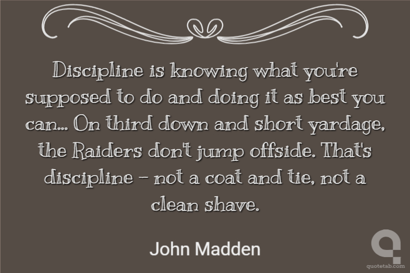Discipline is knowing what you're supposed to do and doing it as best you can... On third down and short yardage, the Raiders don't jump offside. That's discipline - not a coat and tie, not a clean shave.
