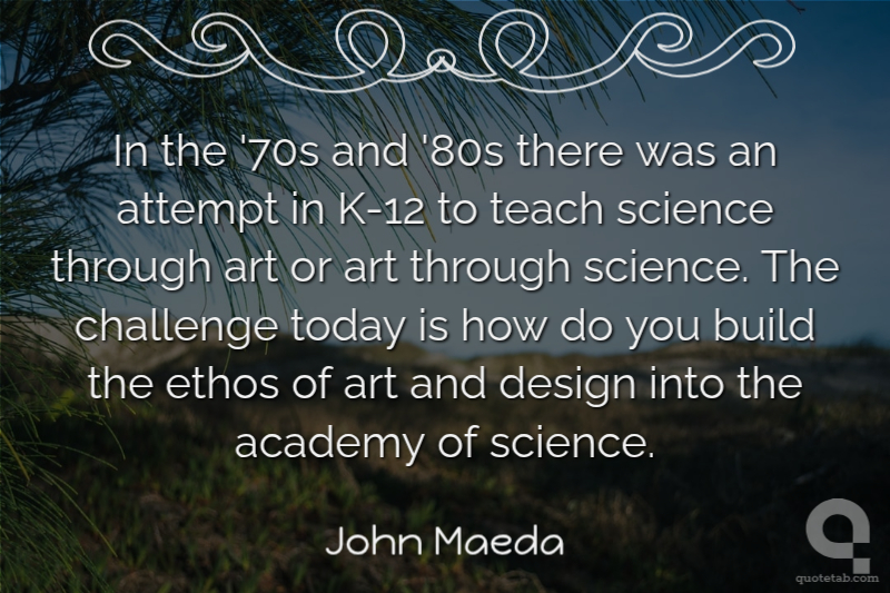 In the '70s and '80s there was an attempt in K-12 to teach science through art or art through science. The challenge today is how do you build the ethos of art and design into the academy of science.