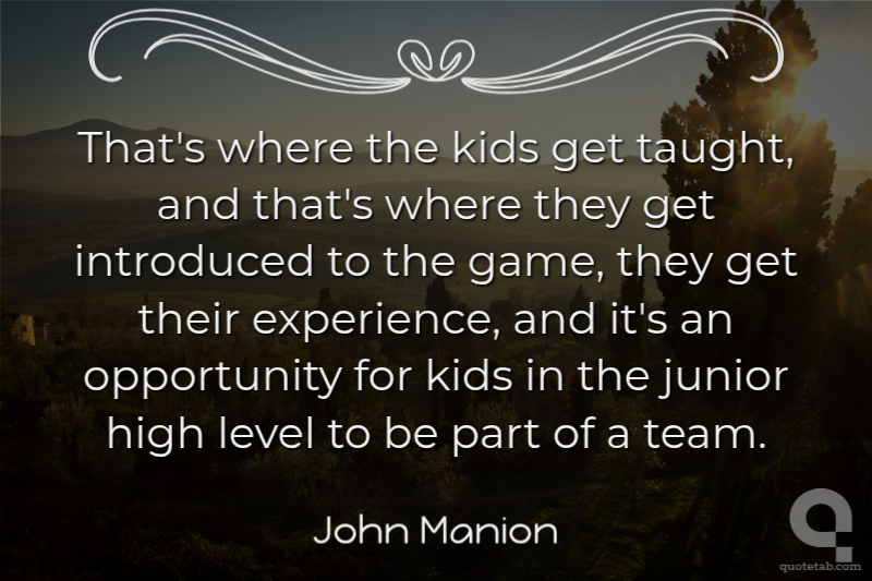 That's where the kids get taught, and that's where they get introduced to the game, they get their experience, and it's an opportunity for kids in the junior high level to be part of a team.