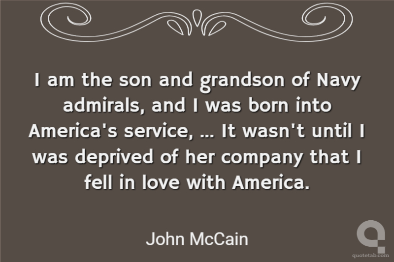 I am the son and grandson of Navy admirals, and I was born into America's service, ... It wasn't until I was deprived of her company that I fell in love with America.