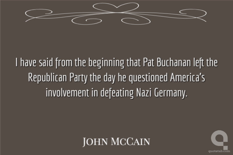 I have said from the beginning that Pat Buchanan left the Republican Party the day he questioned America's involvement in defeating Nazi Germany.