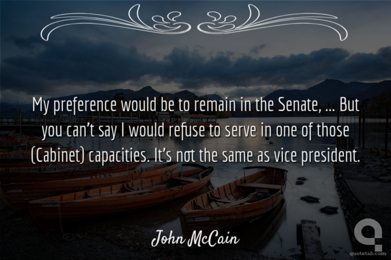 My preference would be to remain in the Senate, ... But you can't say I would refuse to serve in one of those (Cabinet) capacities. It's not the same as vice president.