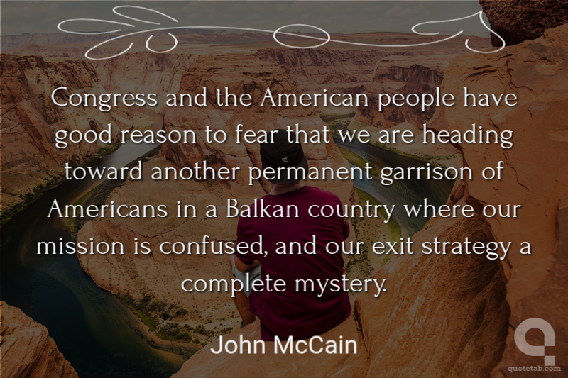 Congress and the American people have good reason to fear that we are heading toward another permanent garrison of Americans in a Balkan country where our mission is confused, and our exit strategy a complete mystery.
