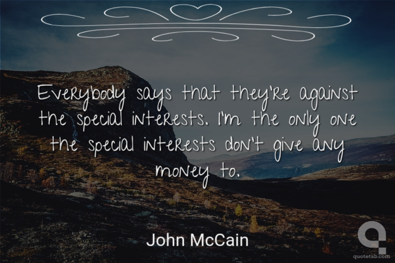 Everybody says that they're against the special interests. I'm the only one the special interests don't give any money to.