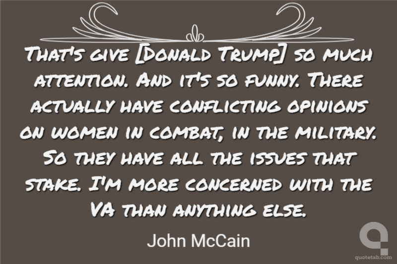 That's give [Donald Trump] so much attention. And it's so funny. There actually have conflicting opinions on women in combat, in the military. So they have all the issues that stake. I'm more concerned with the VA than anything else.