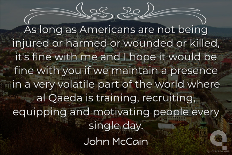 As long as Americans are not being injured or harmed or wounded or killed, it's fine with me and I hope it would be fine with you if we maintain a presence in a very volatile part of the world where al Qaeda is training, recruiting, equipping and motivating people every single day.