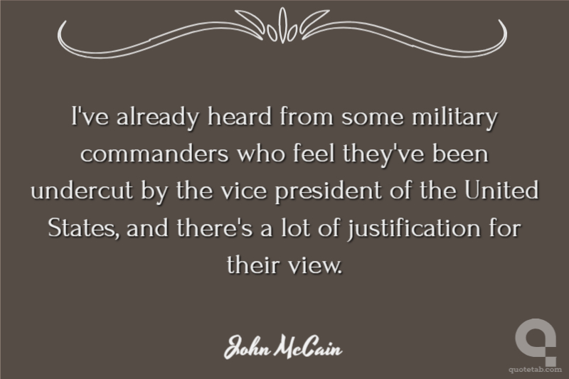 I've already heard from some military commanders who feel they've been undercut by the vice president of the United States, and there's a lot of justification for their view.