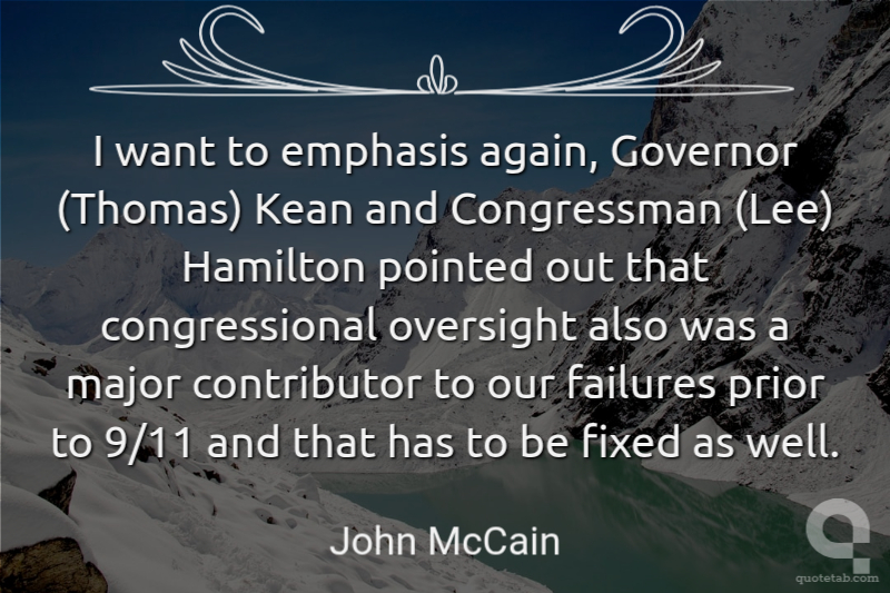 I want to emphasis again, Governor (Thomas) Kean and Congressman (Lee) Hamilton pointed out that congressional oversight also was a major contributor to our failures prior to 9/11 and that has to be fixed as well.