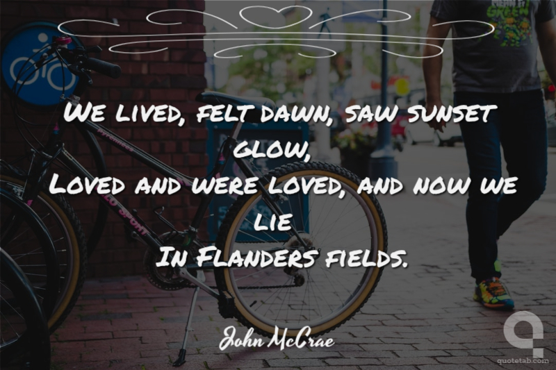 We lived, felt dawn, saw sunset glow, Loved and were loved, and now we lie In Flanders fields.