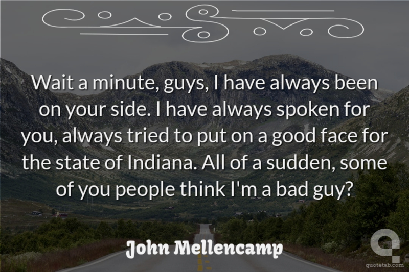 Wait a minute, guys, I have always been on your side. I have always spoken for you, always tried to put on a good face for the state of Indiana. All of a sudden, some of you people think I'm a bad guy?