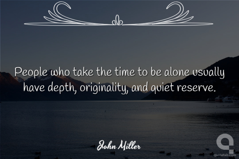 People who take the time to be alone usually have depth, originality, and quiet reserve.