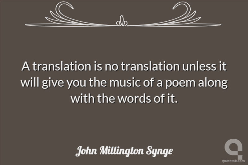 A translation is no translation unless it will give you the music of a poem along with the words of it.