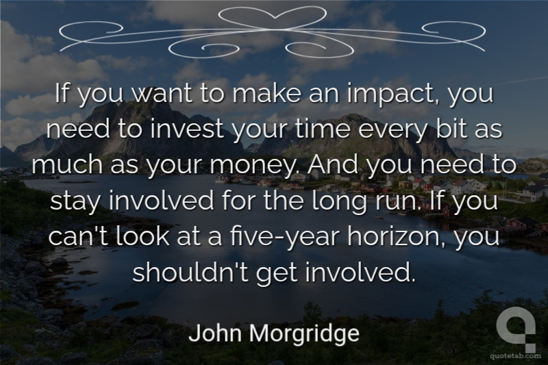 If you want to make an impact, you need to invest your time every bit as much as your money. And you need to stay involved for the long run. If you can't look at a five-year horizon, you shouldn't get involved.