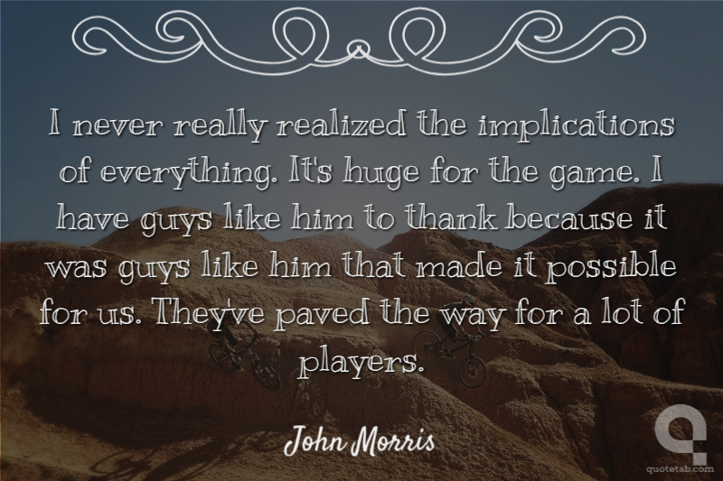 I never really realized the implications of everything. It's huge for the game. I have guys like him to thank because it was guys like him that made it possible for us. They've paved the way for a lot of players.